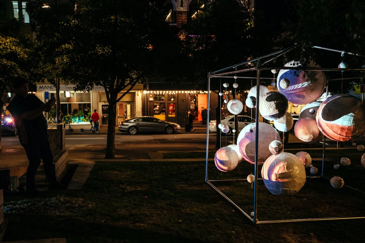 Across the two week period, Heleyni aims to acknowledge community, love, grief, and hope by way of the indoor, the outdoor, and the flow. Armed with a stack of interviews & opinions from her 2022 activation, Heleyni is looking to add to this, by hearing people's updates as to where we are at in terms of our communities housing needs. Her housing bubble sculpture will then be running hour-long open projected video sessions, across the two weeks, sharing citizens' views.