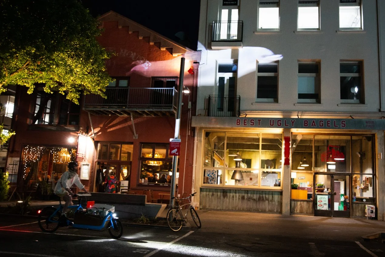 Velocine will slowly wind its way around the Cuba St precinct over two nights, Nov 23rd and 25th, from 8.30pm - 9.30pm each evening. As the bicycle pedals through inner-city streets it will project animation onto the second and third floors of the buildings it passes, creating a stunning wave of sustainability produced sound and visuals. Follow HERE for updates to Velocine’s route.